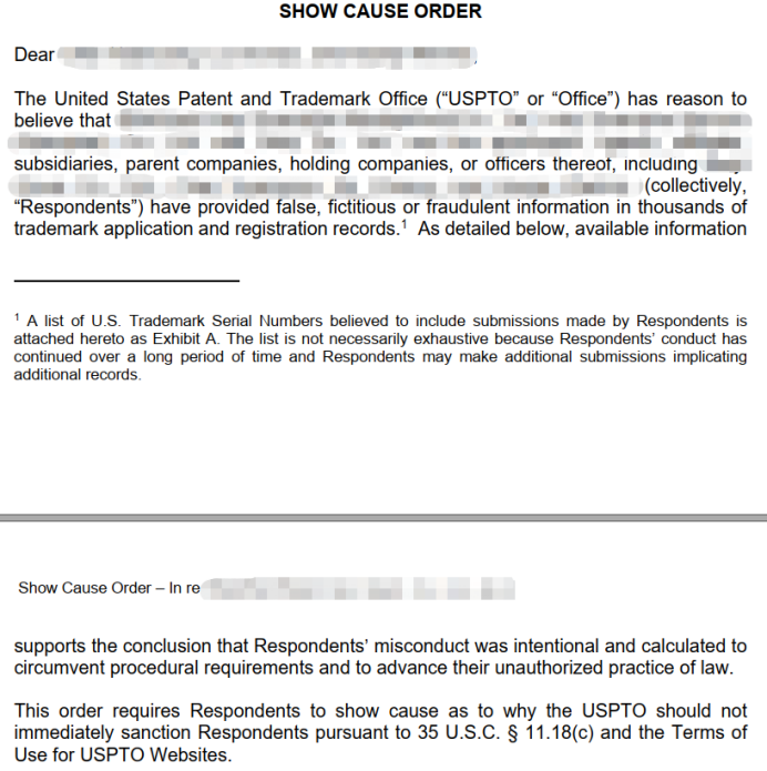 從2019年至今,美國專利商標(biāo)局(USPTO)對中國商標(biāo)申請人/中國商標(biāo)代理機(jī)構(gòu)的違規(guī)商標(biāo)申請行為不斷下發(fā)陳述理由令(Show Cause Order)和制裁令(Sanction)。